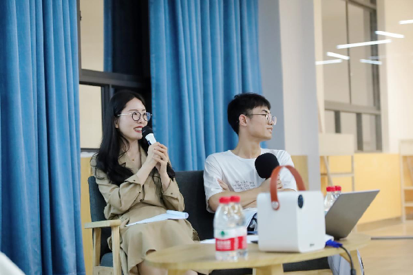 整场沙龙活动分为三大环节:主持人与嘉宾提问式访谈,同学提问环节,以及主持人向嘉宾颁发聘书、全体合影留念。