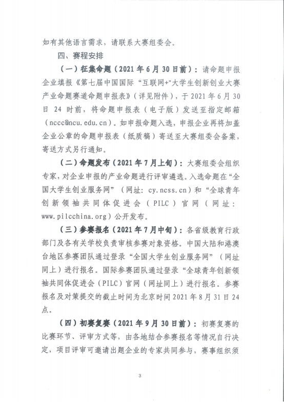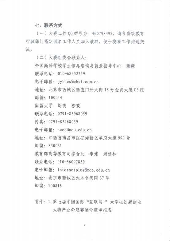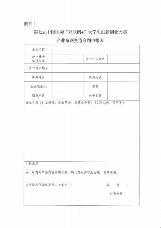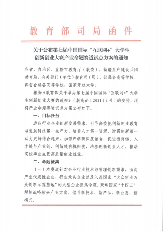 关于公布第七届中国国际“互联网+”大学生创新创业大赛产业命题赛道试点方案的通知