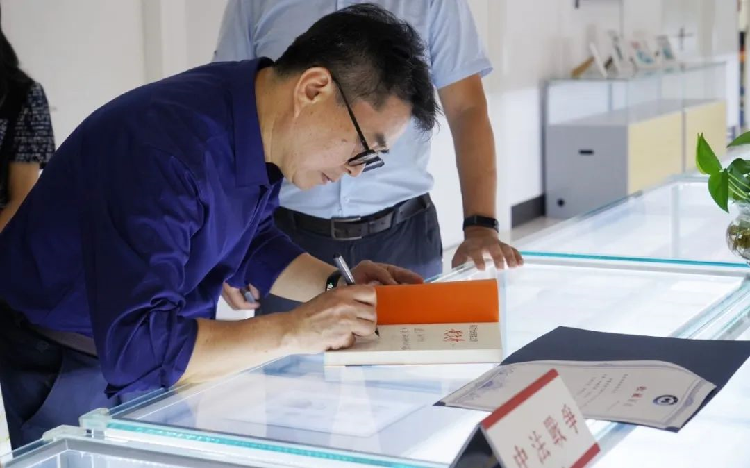 随后,林超俊秘书长为英雄精神体验传承基地赠书,为长篇报告文学《新时代的青春之歌——黄文秀》,记录了黄文秀同志“在脱贫攻坚第一线倾情投入、奉献自我,用美好青春诠释了共产党人的初心使命,谱写了新时代的青春之歌”的故事。马骏院长接受了赠书,并为林超俊秘书长颁发了收藏证书。