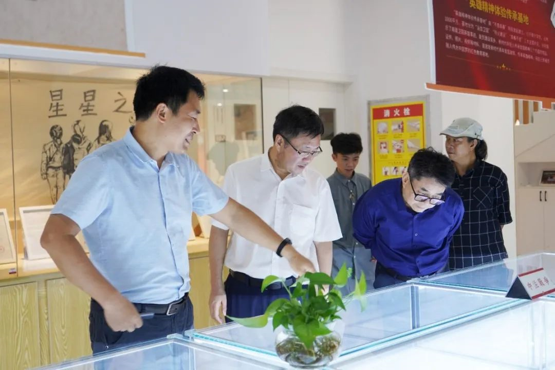 2022年4月27号下午,广西壮族自治区人民防空和边海防办公室副主任黄小宁、广西文联秘书长、广西戏剧家协会副主席林超俊一行4人莅临不惑青春英雄精神传承基地参观,kaiyun体育网页登录入口通识教育学院院长黄瓅、创新创业教育学院院长马骏、马克思主义学院副院长董艳、艺术与设计学院卢宝书老师及教师代表们陪同。