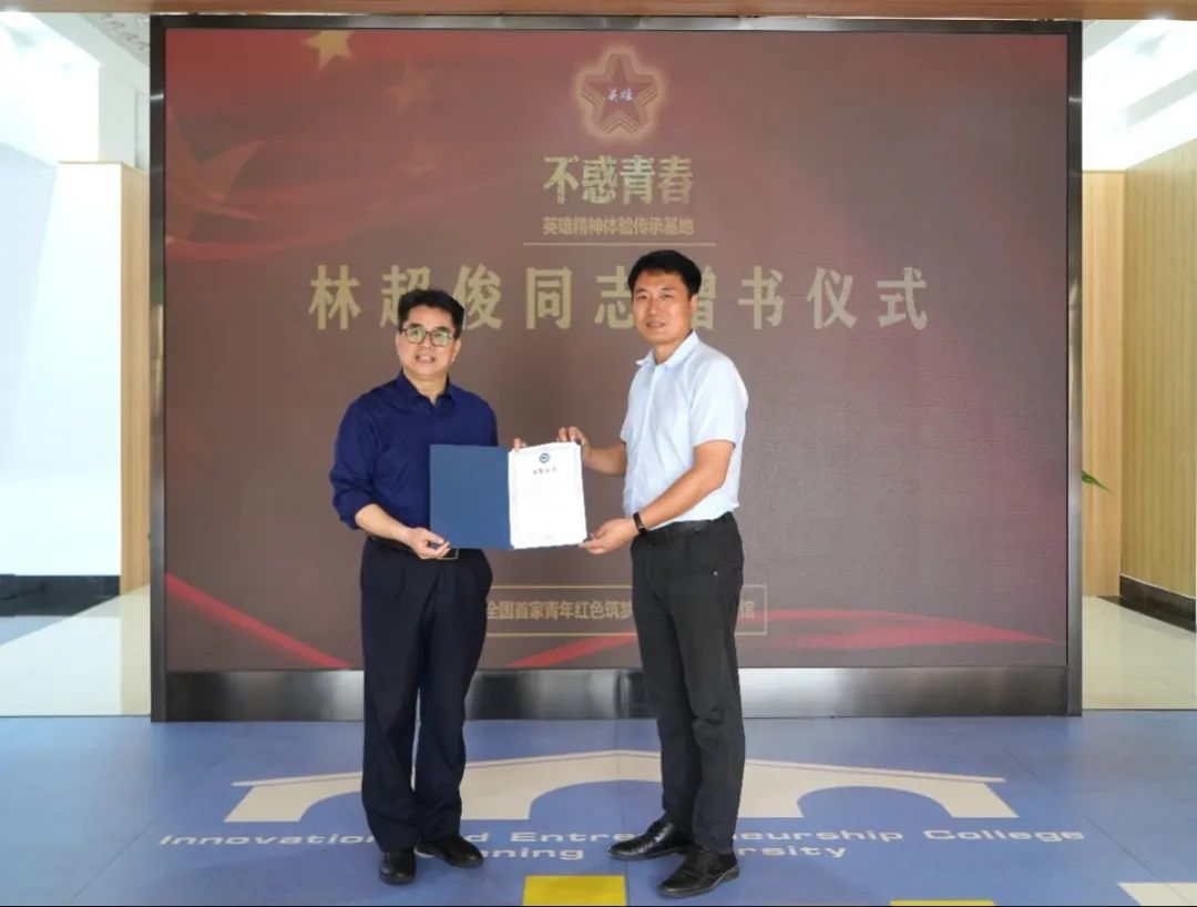 ★ 创新创业教育学院马骏院长为林超俊秘书长颁发收藏证书