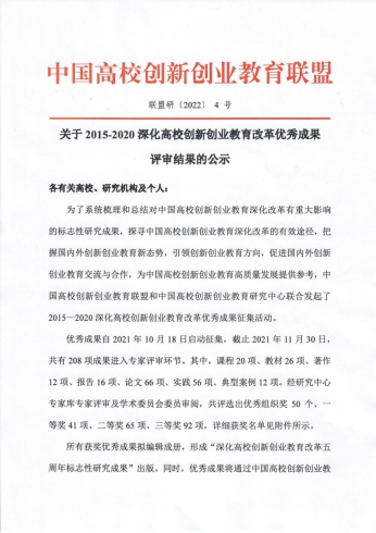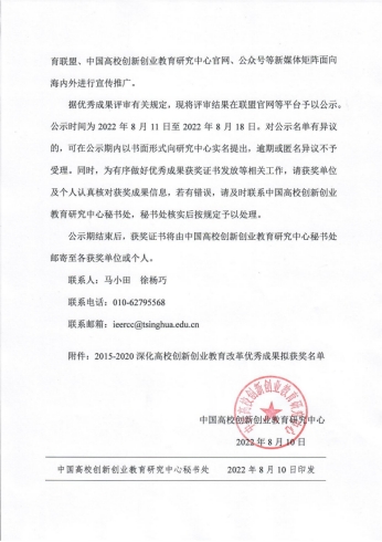 ✦ 2015-2020深化高校创新创业教育改革优秀成果公示名单