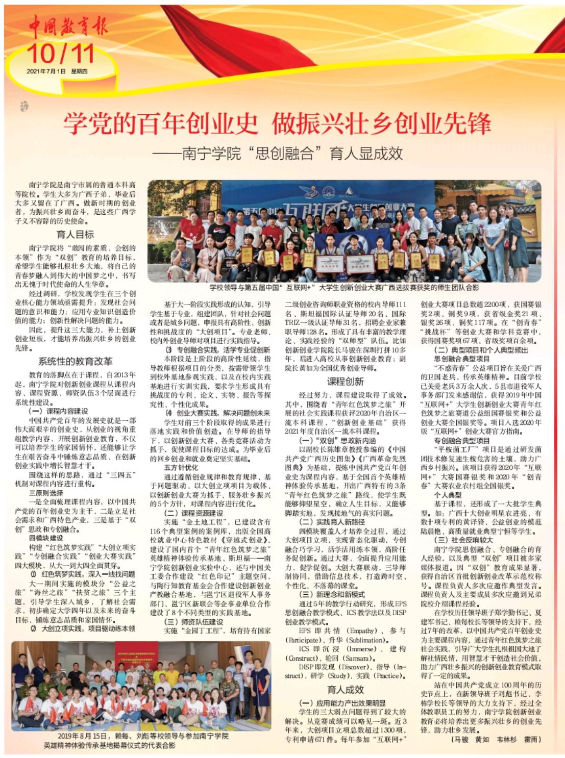 项目事迹获《中国教育报》建党百年特刊报道