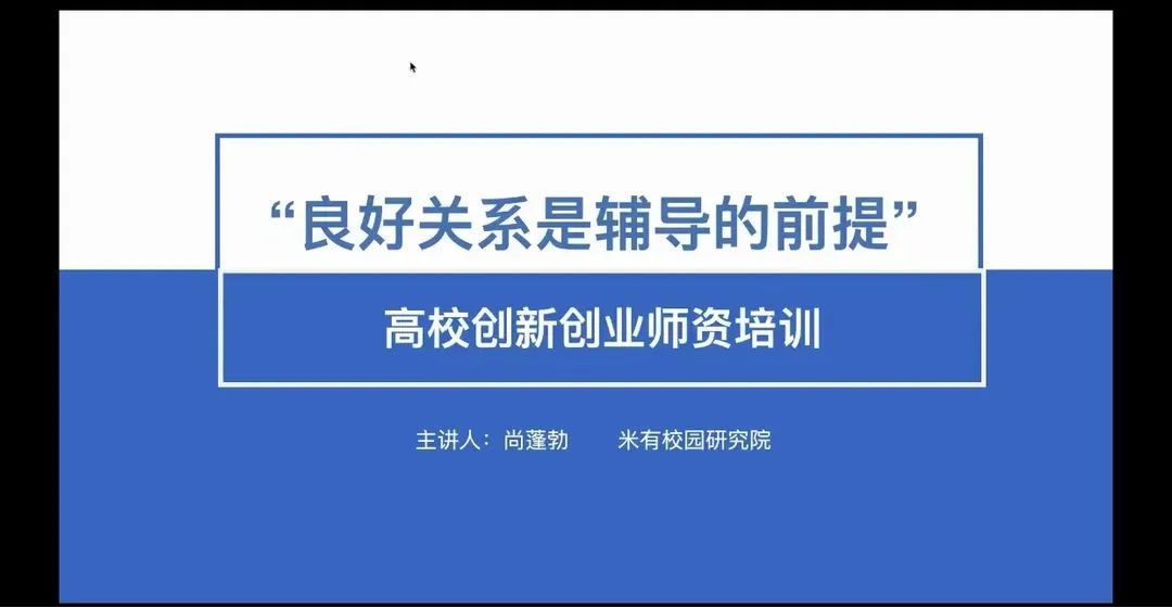 12月27-28日,创新创业教育学院组织我校34名专业教师及创业导师参加由北京米有校园科技有限公司双创教育研究院开展的《燃点·双创实战教师研习营》师资专题培训,主讲人为米有校园联合创始人、教育部首批万名优秀创新创业导师尚蓬勃。受疫情影响,培训以线上的形式举行,参加培训的老师们纷纷表示受益匪浅。