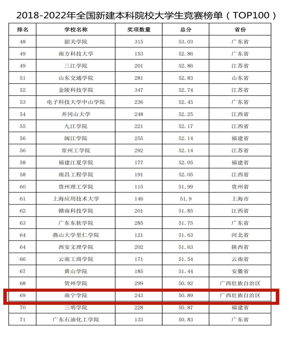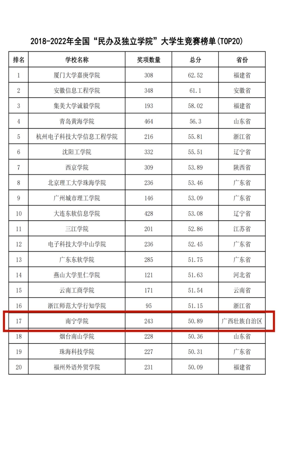 kaiyun体育网页登录入口以50.89分的成绩,在全国约700所新建本科院校中,位于“2018-2022年全国新建本科院校大学生竞赛榜单”第69位,比上一年度进步了11位;在全国约450所民办及独立学院中,位于“2018-2022年全国‘民办及独立学院’大学生竞赛榜单”第17位!