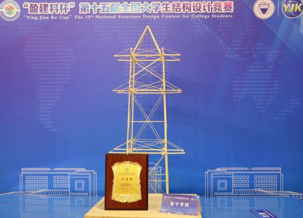 据统计,此次竞赛全国共计超过550所高校、1100支队伍参与了分区赛选拔。我校参赛选手在黄家聪老师和梁小光老师指导下,经过广西分区赛选拔,以广西唯一一所本科高校的身份参加国赛。本次大赛题目模型采用以三重木塔结构为基本单元,要求参赛者针对竖向荷载、扭转荷载及水平荷载等多种荷载工况下的空间结构进行受力分析、模型制作及加载试验。参赛选手需要在模型制作、陈述答辩、模型加载3个环节展开激烈角逐,竞争奖项。