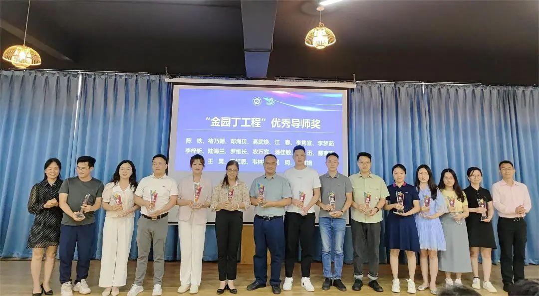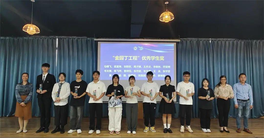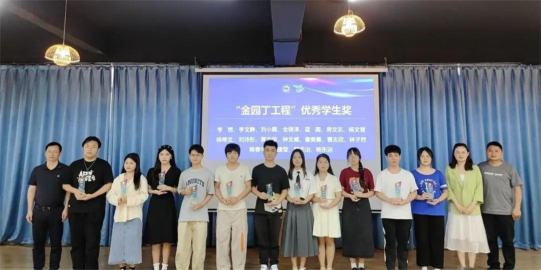 ★信息工程学院副书记岑铭君(左一)、交通运输学院副院长范毅(右一)为学生颁发“金种子工程”优秀学生奖