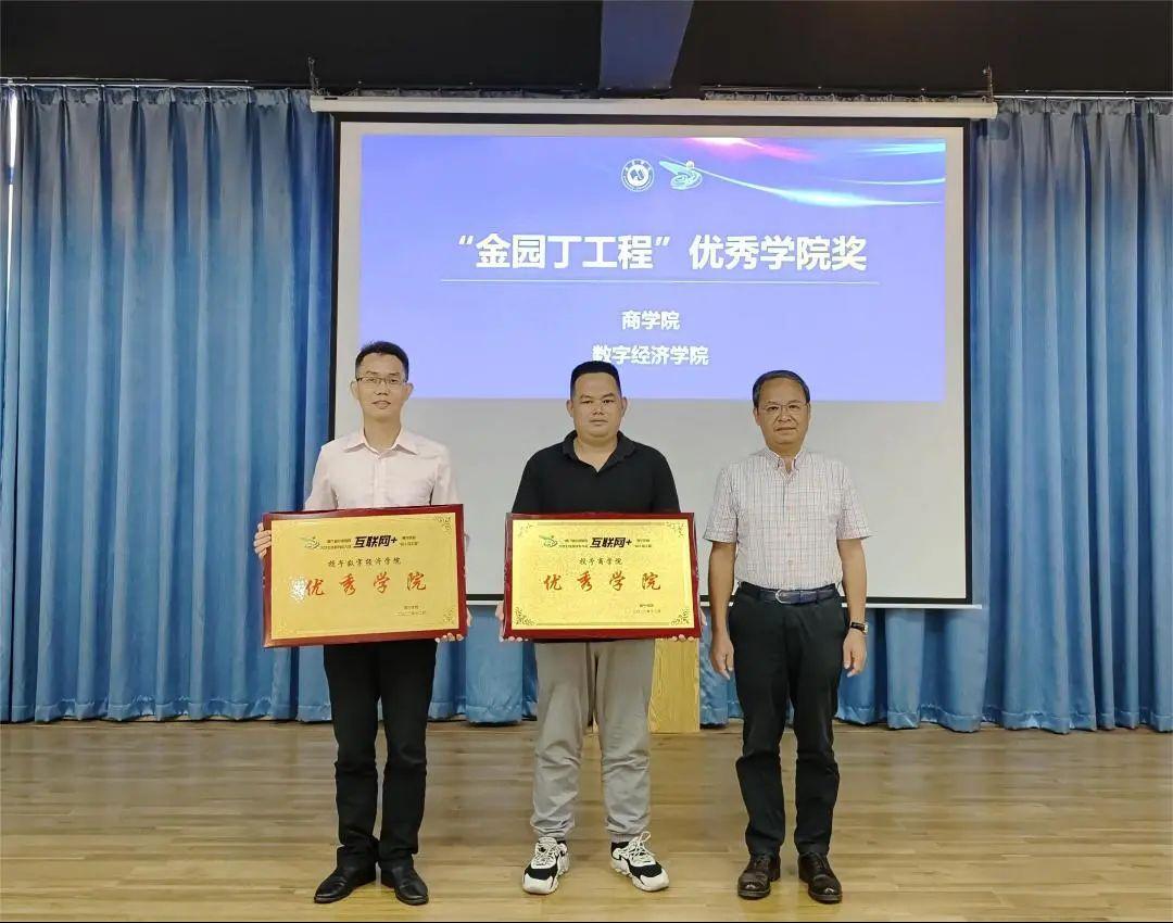★ 陈雄章副校长(右一)为获奖学院颁发“金土地工程”优秀学院奖