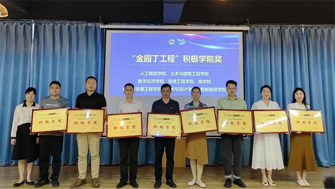在颁奖环节,对在第八届“互联网+”大赛中表现优异的组织、团队和个人进行颁奖,依次颁发“金种子工程”优秀学生奖、“金园丁工程”优秀导师奖、“金土地工程”积极学院奖以及优秀学院奖,鼓励我校师生在第九届“互联网+”大赛的舞台上继续发光发热,取得优异成绩。