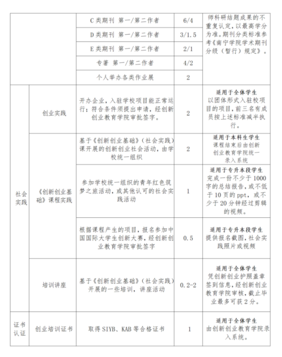 普通本科生和专科生毕业资格审查时,创新创业实践学分不低于 4 分;专升本学生毕业资格审查时,创新创业实践学分不低于 2 分。