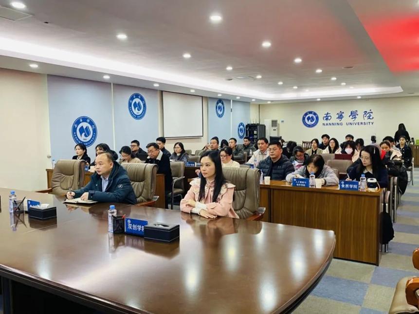 本次会议除了广西民族大学的主会场外,还在全区各个高校设立分会场,通过网络直播的形式同步进行。我校副校长王宁章、创新创业教育学院院长马骏、创新创业教育学院双创业务科科长罗维长和教师代表李梓昕在主会场参加会议。教务处副处长张传贵、创新创业教育学院副院长黄如、各二级学院分管创新创业教育工作的领导、赛事联络人和项目师生代表在分会场参加会议。