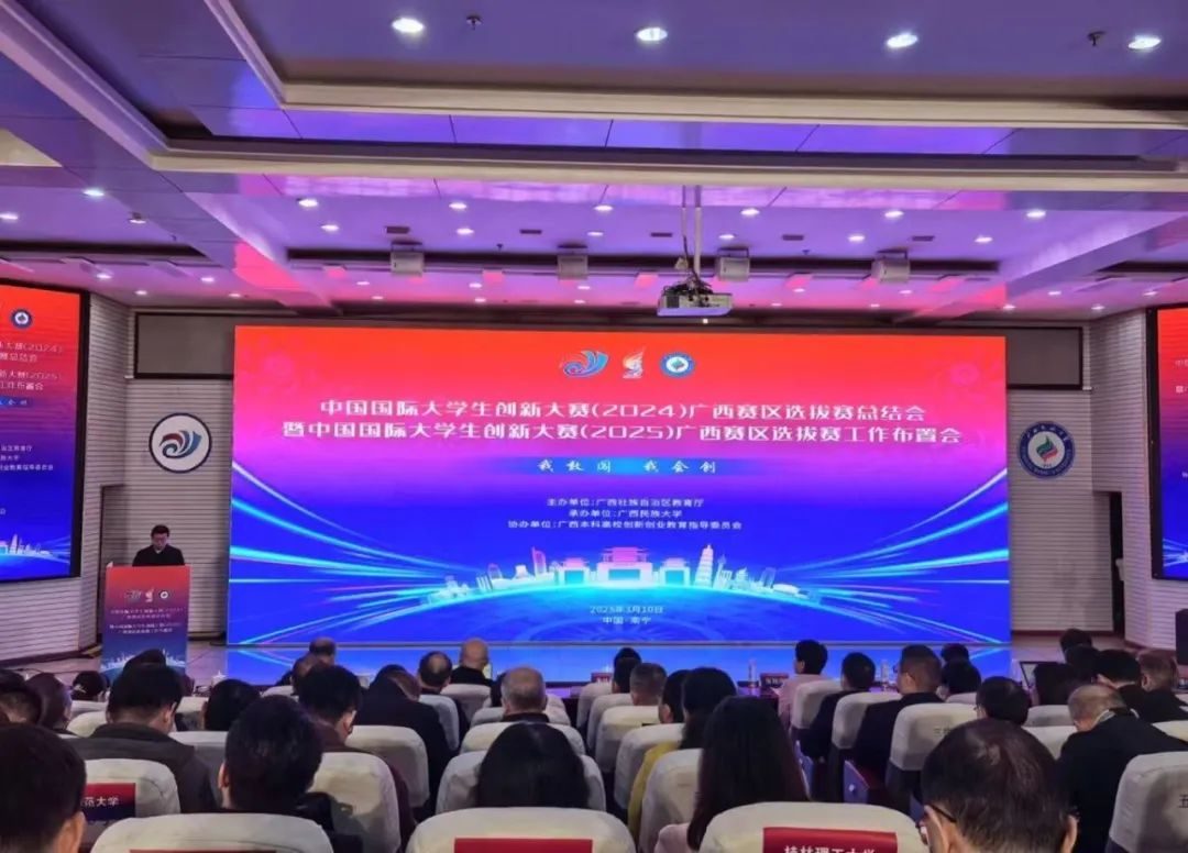 2025年3月10日上午,中国国际大学生创新大赛(2024)广西赛区选拔赛总结会暨中国国际大学生创新大赛(2025)区赛工作布置会在广西民族大学举行。会议由广西壮族自治区教育厅主办、广西民族大学承办、广西本科高校创新创业教育指导委员会协办。