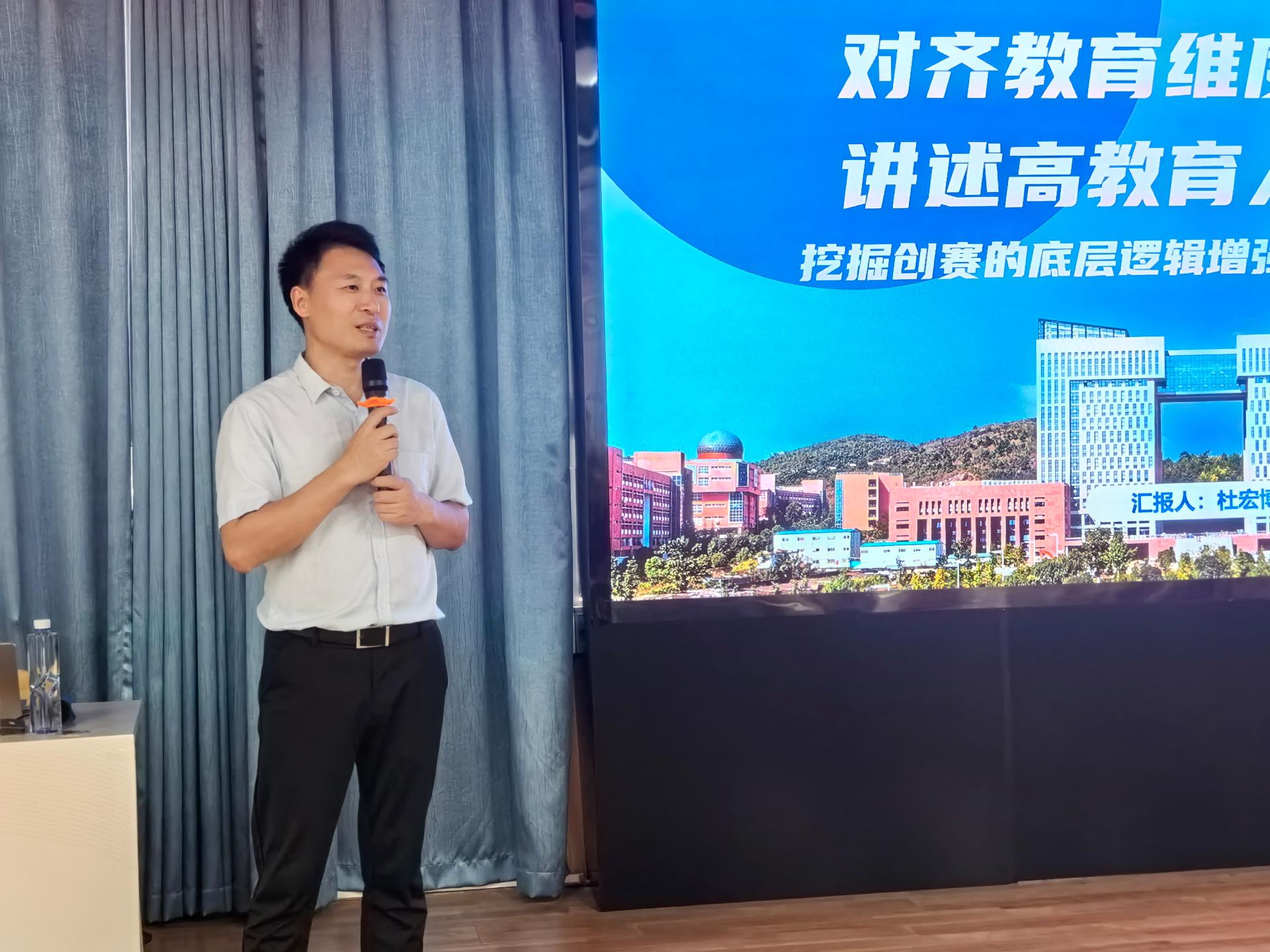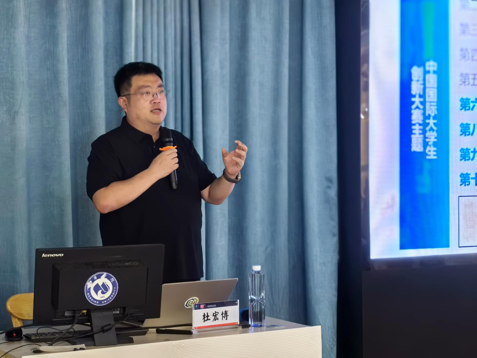 杜宏博教授围绕“如何挖掘创赛底层逻辑、讲好双创育人故事”开展培训。他指出,随着中国国际大学生创新大赛评审规则的调整,大赛逐步从“创业导向”回归到“育人导向”;高质量项目需要“看见学生”“看见成长”“看见祖国未来”,即选题要紧贴国家战略需求,突出学生在项目中的主体地位,体现青年学生的时代责任与社会担当。杜教授还通过多个获奖案例深入浅出地剖析创赛的底层逻辑,教老师们在大赛中如何呈现一流人才培养的“好故事”。
