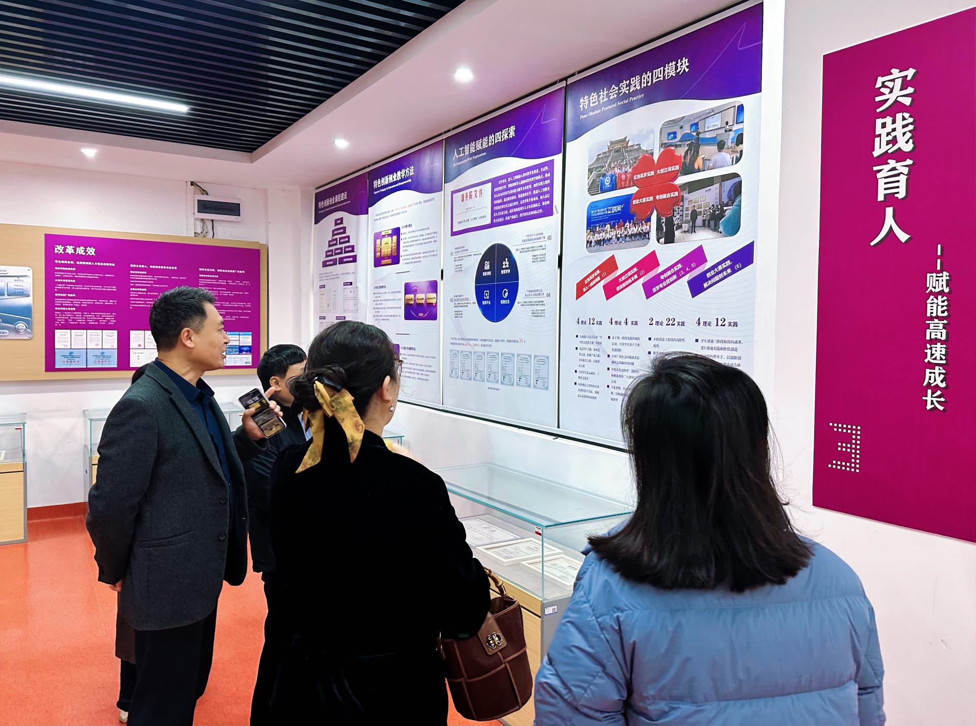 首先,韦良副院长一行前往kaiyun体育网页登录入口创新创业成果展厅参观。解说员李梓昕引导大家依次参观“邕水敷文,庚续千年文脉”“行知范式,践行育人初心”“实践育人,赋能高速成长”“桃李芬芳,彰显最高荣耀”四个展区,详细讲解了我校创新创业教育的发展概况、改革举措及育人成效。