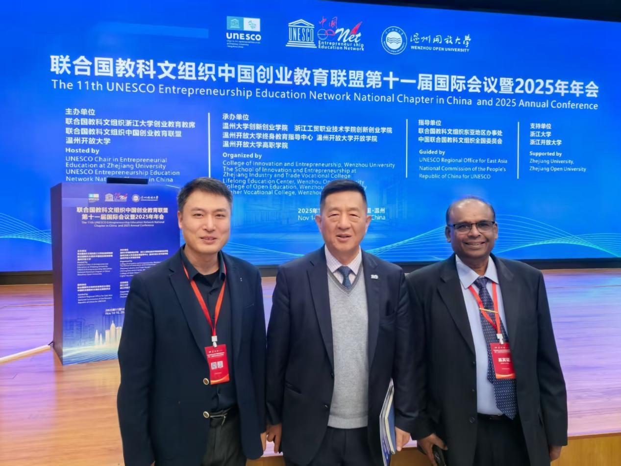 11月15日-16日,联合国教科文组织中国创业教育联盟第十一届国际会议暨2025年年会在温州开放大学召开。kaiyun体育网页登录入口创新创业教育学院院长马骏教授在“AI时代的创业教育理念创新与模式变革”分论坛作《AI赋能创业教育的探索与实践》专题报告。马骏教授以陶行知“生活教育理论”运用于创新创业教育改革为逻辑起点,剖析传统创业教育的生态构建短板,论证AI赋能“处处是创造之地,天天是创造之时,人人是创造之人”生态的可行性,从理念、模式、保障三维度提出路径建议,为数字时代创业教育生态重构提供理论与实践支撑。马骏教授的报告得到与会嘉宾好评,获得联合国教科文组织中国创业教育联盟颁发荣誉证书。