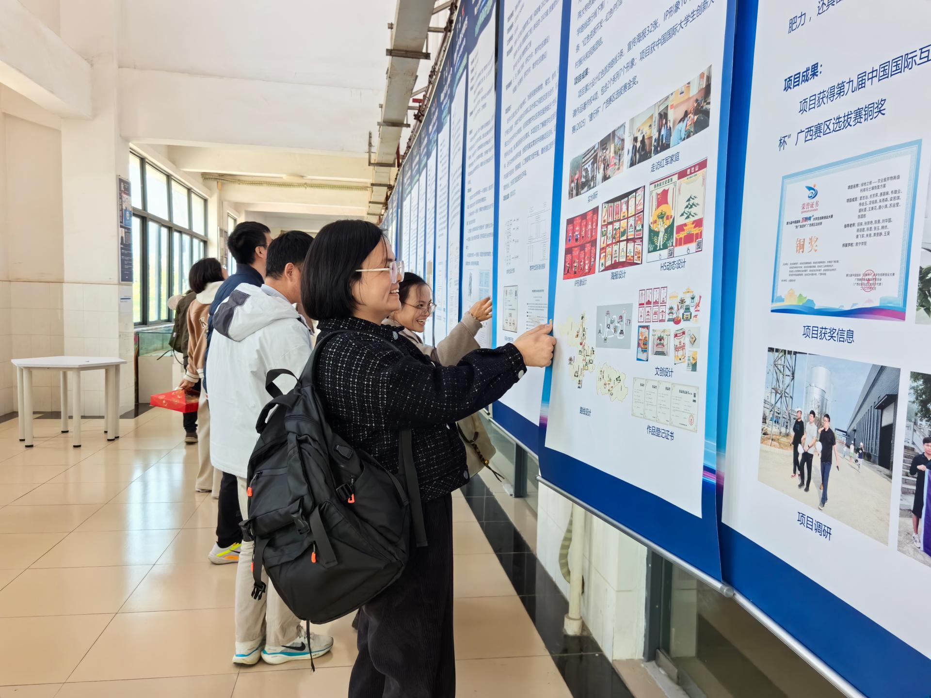 同期举行的大学生创新训练计划项目成果展,集中展示了学校国家级、自治区级在研项目的阶段性成果,通过展板的形式,生动体现了学生团队的创新思维与实践能力。在观展交流后,由专任教师、创业导师代表组成的评审团,从创新性、应用潜力、完成质量及团队表现等维度进行综合评议并投票,最终评选出12项“最佳创意项目”。