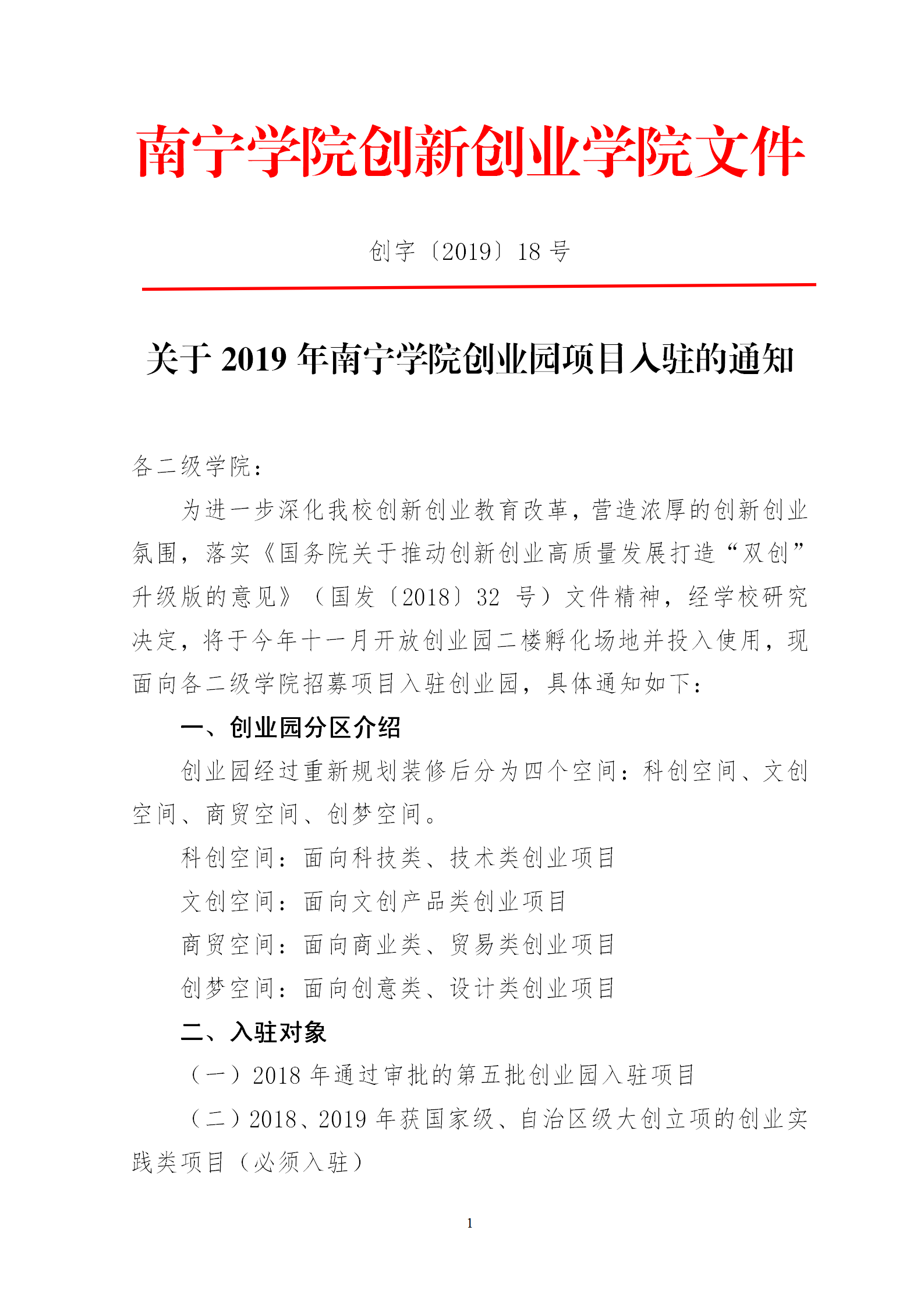 关于2019年kaiyun体育网页登录入口创业园项目入驻的通知