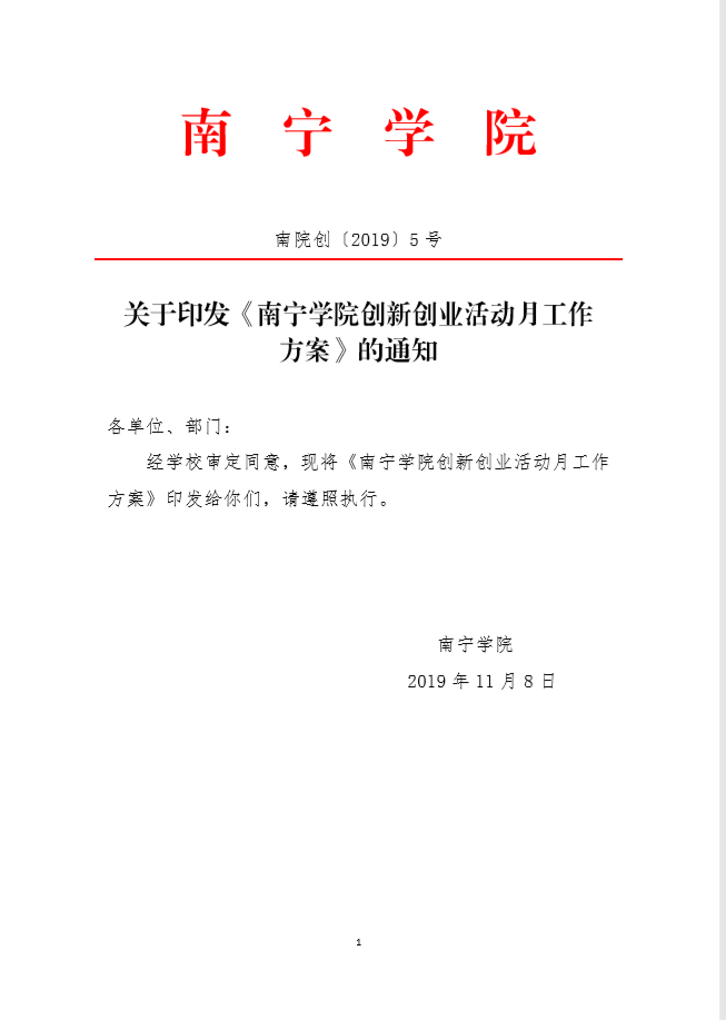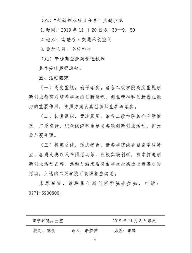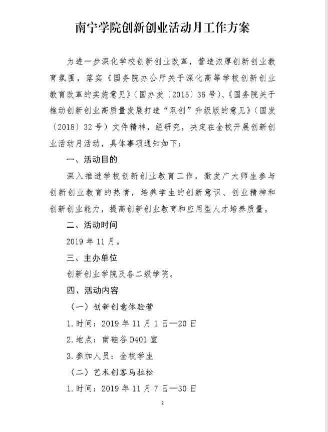 (南院创〔2019〕5号)关于印发《kaiyun体育网页登录入口创新创业活动月系列活动的方案》的通知
