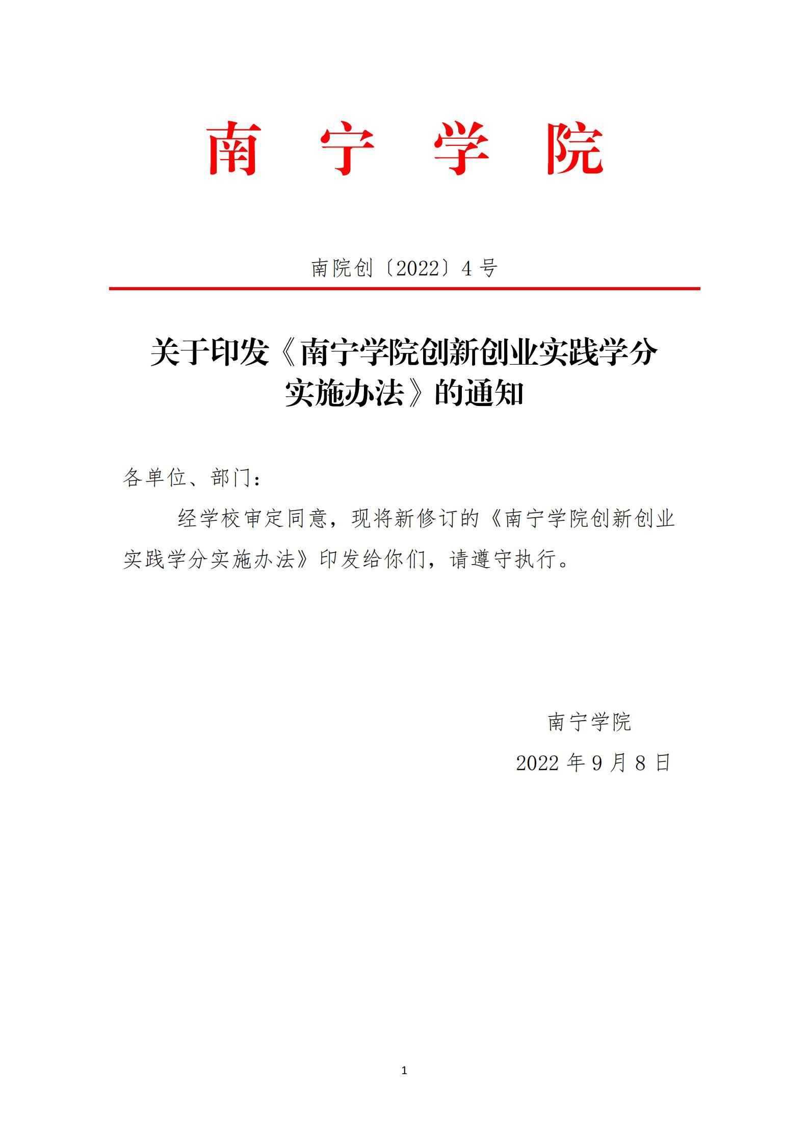 (南院创〔2022〕4号)关于印发《kaiyun体育网页登录入口创新创业实践学分实施办法》的通知.doc