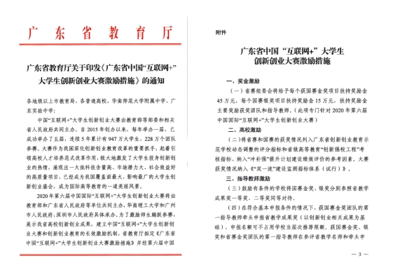 江西省教育厅:对大学生参加全国“互联网+”大赛铜奖以上奖项并在赣注册经营一年以上的创业项目给予20万元资助。