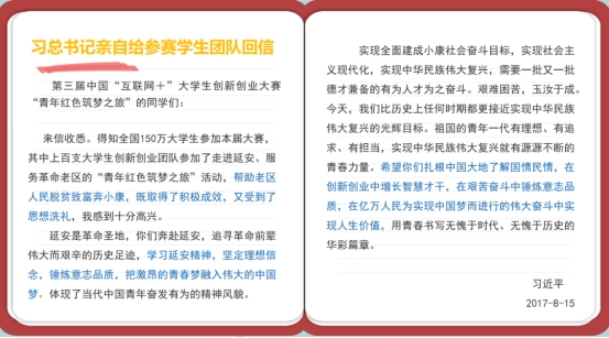 图:习近平总书记亲自给参加第三届大赛的学生团队回信