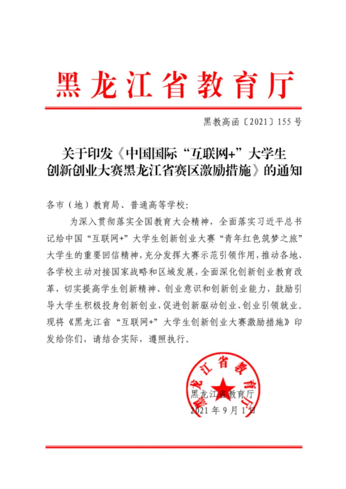 将省/国赛获奖情况纳入黑龙江省高水平大学与优势特色学科建设和“双特”“双高”“双优”计划绩效评估;给与国家级金奖项目不少于10万,银奖不少于5万,铜奖不少于2万元的奖励;研究生参赛获奖应计入科研成果及学位考核范围,本科生获省赛金奖及以上,可用获奖成绩申请学位论文答辩,省铜及以上奖励可用获奖成绩申请学分认定。