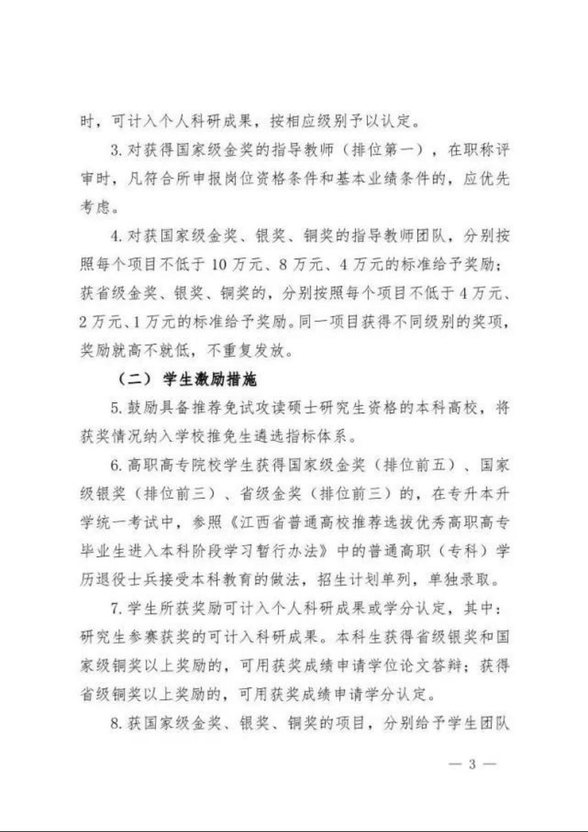 (六)对具备研究生导师资格的国赛金奖、银奖项目指导教师,鼓励学校在安排下一年度研究生招生指标时予以倾斜。