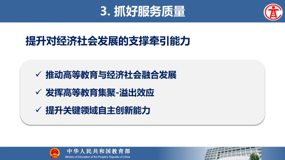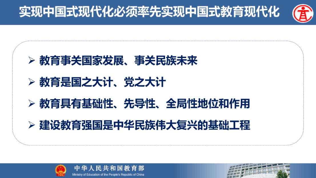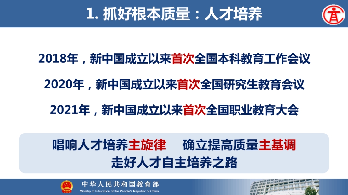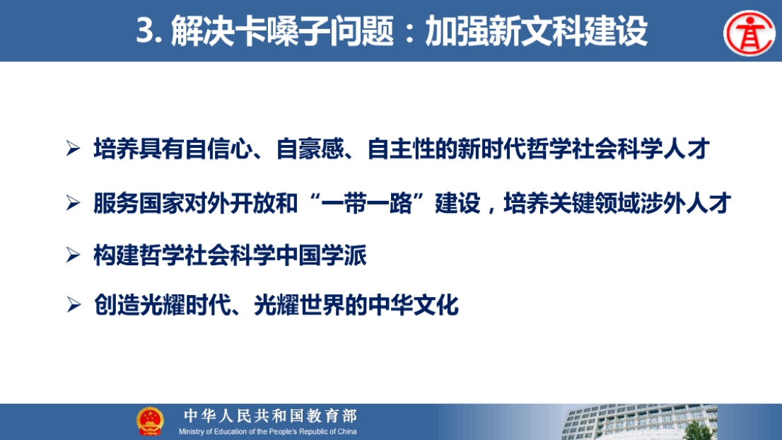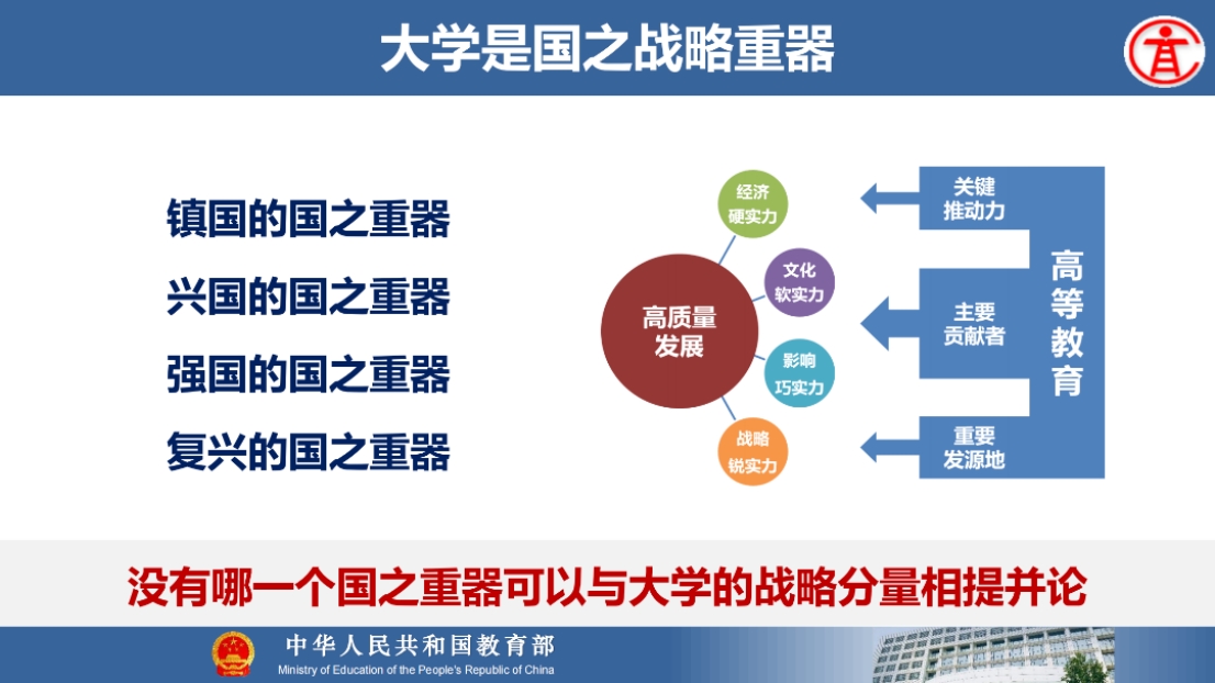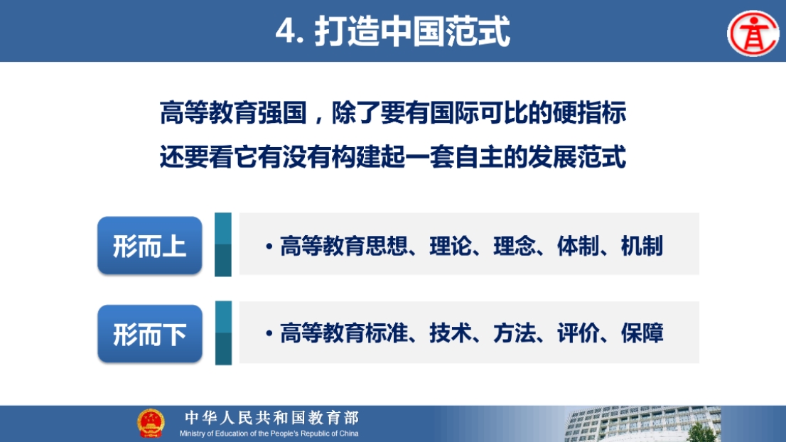 8月21日上午,教育部高等教育司吴岩司长出席同济大学中层干部综合治理能力提升专题研讨班,并作题为“服务中国式现代化建好金专、金课、金师、金教材”的主旨报告。