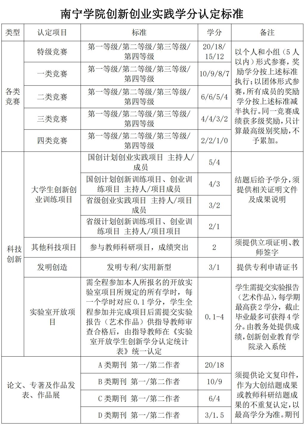 各类学科专业技能和创新创业竞赛:认定项目包括特级竞赛、一类竞赛、二类竞赛、三类竞赛、四类竞赛。