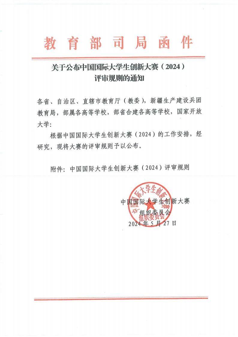 中国国际大学生创新大赛(2024)评审规则的通知出炉啦!