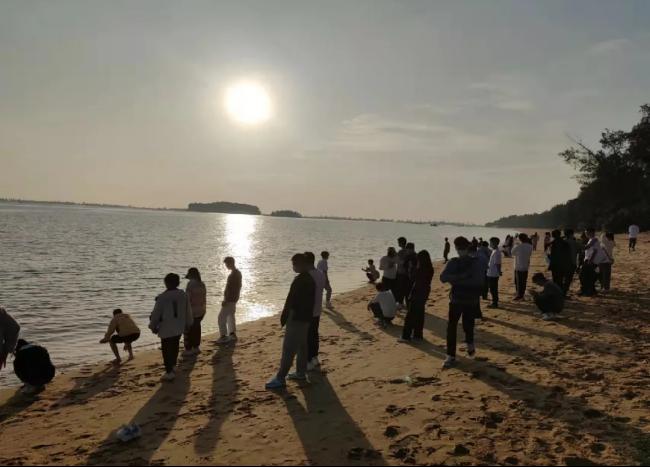 第四站同学们来到了距离钦州市区约47公里的犀丽湾。犀丽湾东面靠近三娘湾,西面靠近钦州港,地处钦州市最美的滨海大道之上,但是同学们经过调研发现不少问题现象:例如到此处游玩的游客较少,生活配套设施不完善,提供游客游玩项目少;该地距离市区距离较远,却缺少市区直达的公共交通工具等等。通过调研实践,同学们开展了激烈讨论,研讨如何改善当地经济,建设当地旅游品牌。