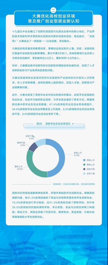 此外,大赛也转变了高校毕业生对创业的观念和看法,启发学生发现新的创业机会,创业作为新的职业选择,为学生就业提供了更多方式。