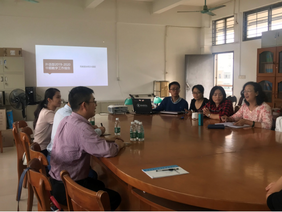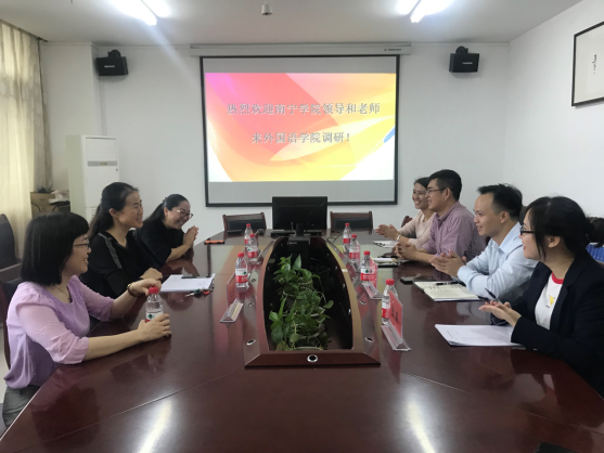 调研小组最后前往海南热带海洋学院外国语与国际文化交流学院进行了参观学习,详细了解了该校外国语学院与国际合作交流处合并经验和不断发展的历史,对方院校老师也热情介绍了该校大学英语低年级小班教学、高年级分层教学的经验。