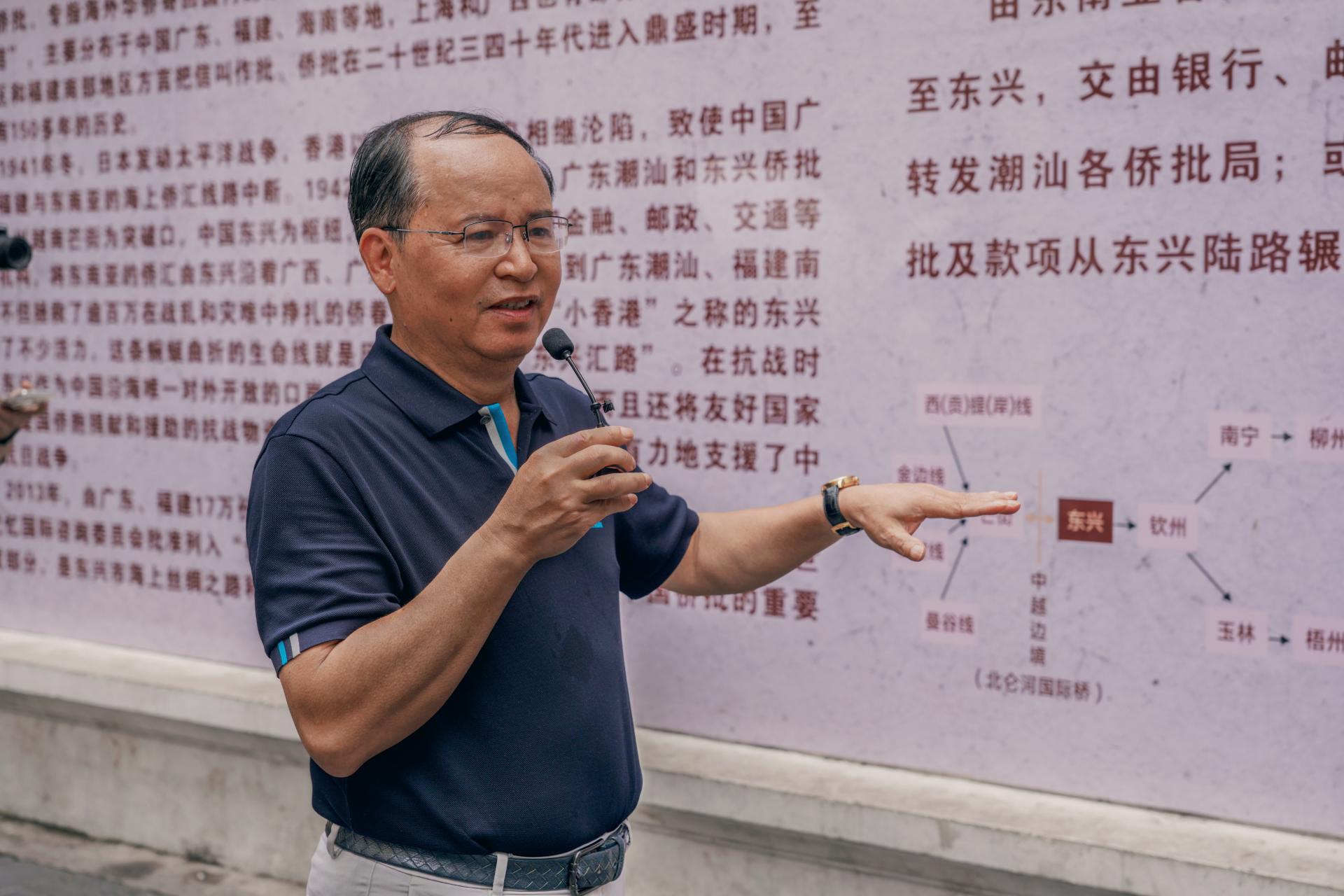 两天的行走课堂,在东兴口岸、胡志明亭、1368(1)号界碑、战争遗址、东兴侨批馆、中越革命烈士纪念碑、大清国一号界碑、219国道起点、广西沿边公路建设纪念碑、东兴山海相会广场、山半岛白龙炮台、港口区海上胡志明小道起点、防城区防城城北烈士陵园等地,陈雄章教授用大量的史实、感人的英雄事迹、深厚的学术水平、丰富的社会实践经验为师生讲述了一场场、一幕幕精彩课堂,他表示:打破教室空间和教材局限,以社会大资源、大课堂,增长学生的见识,涵养学生的爱国情怀、理想信念、必胜气质、奉献精神,以真实的教学改革落实以学生发展为中心的教育理念。