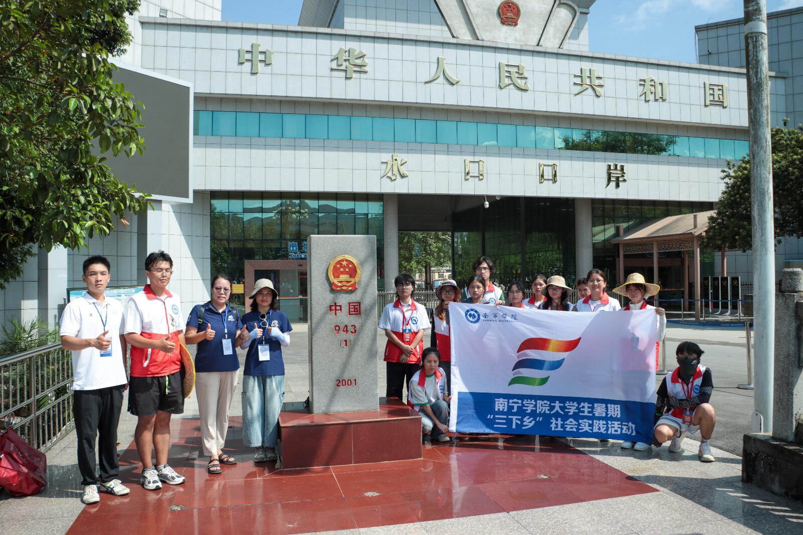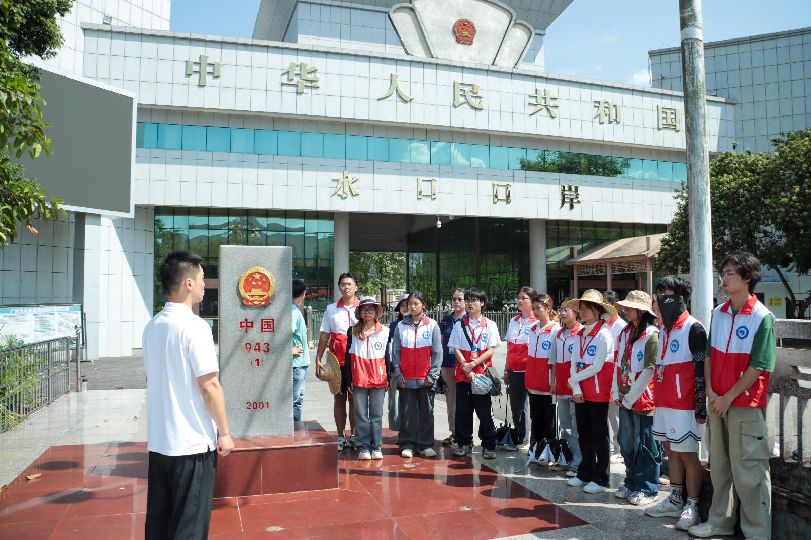 7月11日,实践团开展国家安全主题团日活动。上午,实践团师生来到水口镇合平村中越边境界碑处,合平村驻村第一书记农书记为师生们详细讲述了界碑背后的历史故事。实践团成员驻足凝视界碑,认真聆听先辈们卫国戍边的事迹,深刻体会到“寸土不让”的家国情怀。下午,实践团在水口口岸开展“边疆安全·青年担当”主题团课,由学院团委书记覃兆刚老师主讲。课上,覃老师结合边疆实际,讲解了反走私、反间谍等国家安全知识,通过真实案例警示大家时刻绷紧国家安全之弦。