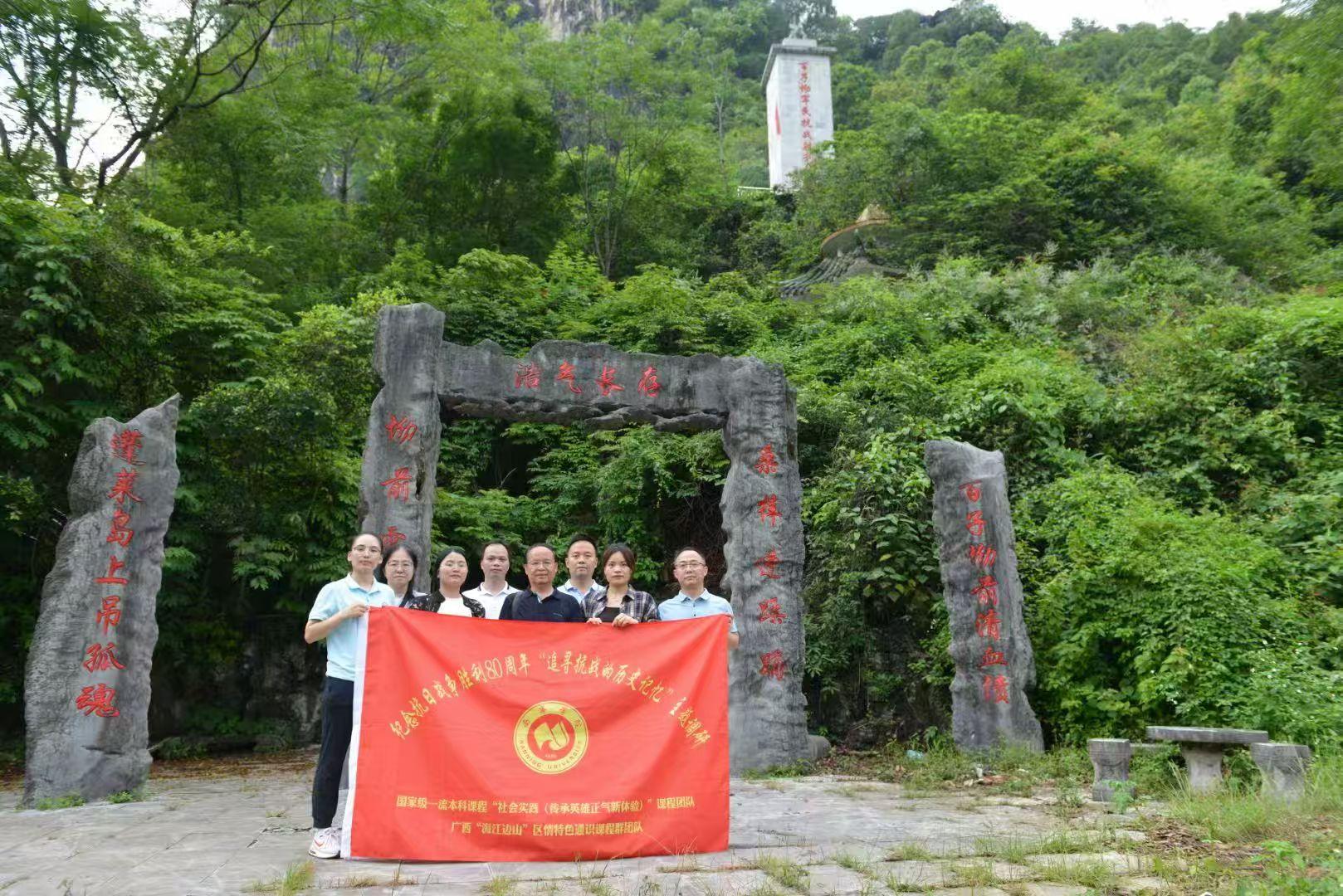 6月8日,课程团队走进进柳州市百子坳军民抗战胜利遗址,追寻抗战的有历史记忆。1944年11月11日,柳州、柳江沦陷,日军暴行激起柳江人民极大愤怒。1945年6月中旬,驻扎多地的日军第3师团后卫第6联队约2000人企图沿柳邕公路向柳州撤退,百子坳是必经之路。国民革命军第46军175师525团团长卢玉衡奉命率全团,联合当地自卫队270多人提前埋伏。16日晚,日军进入埋伏圈,我军民居高临下发起攻击,激战两天两夜,打死日军200多人、伤700多人,战马60匹 ,获战利品一批。 百子坳军民抗战胜利是柳江人民抗战胜利的缩影,彰显了军民团结一心、抵御外侮的伟大精神。
