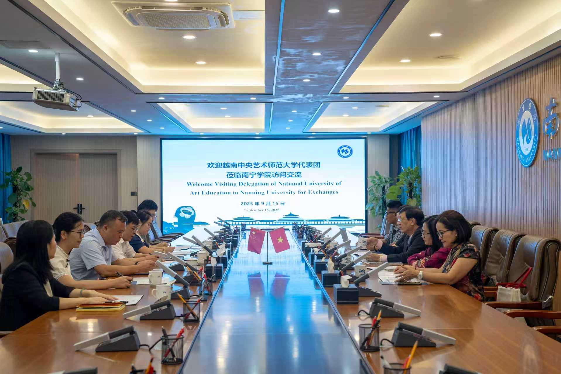 9月15日,越南中央艺术师范大学党委书记、校务委员会主席陶登凤先生率团一行5人莅临我校访问。代表团在龚击副校长陪同下参观了校园,切身感受我校办学环境与文化氛围。随后,双方举行了高层座谈交流会,我校党委书记刘彪、副校长龚击及相关二级学院、职能部门负责人出席。会谈中,双方围绕师生互访、艺术工作坊、联合创作、共同举办国际艺术展览与学术会议等具体领域进行了富有建设性的深入探讨,在合作方向上达成高度共识,两校共同签署了《合作谅解备忘录》,为后续在设计与艺术教育领域开展一系列高质量、实质性的交流项目奠定了坚实的基础。