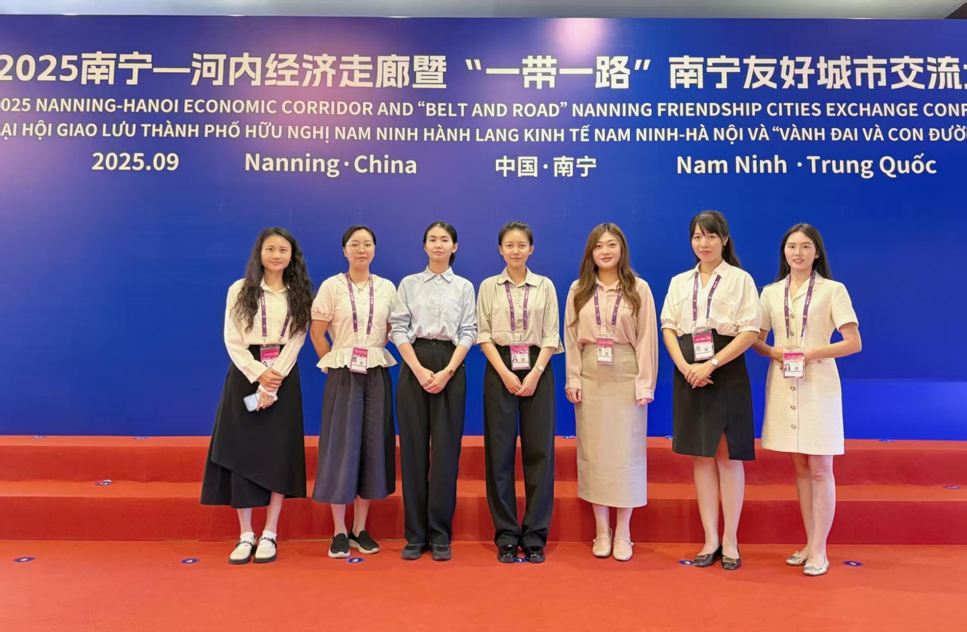 我校选派7名外语能力强、专业素质突出的教职工,全程参与外宾接待与服务保障工作。接待越南北宁省、广宁省、老挝乌多姆塞省、马来西亚新山市、怡保市及文莱广西商会等多个政府与商协会代表团,协助外宾顺利参加“2025南宁—河内经济走廊暨‘一带一路’南宁友好城市交流大会”“2025广西国际友城推介交流活动”“中国(南宁)—东盟人工智能场景应用对接交流会”等重要会议及相关政务会见和餐叙活动,服务质量获外方高度认可。