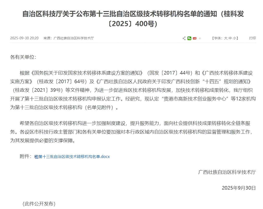 近日,根据《自治区科技厅关于公布第十三批自治区级技术转移机构名单的通知》(桂科发〔2025〕400号),kaiyun体育网页登录入口科技成果转移转化中心被认定为第十三批自治区级技术转移机构。