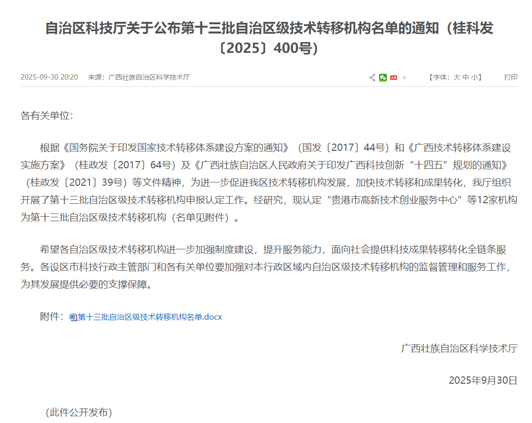 近日,根据《自治区科技厅关于公布第十三批自治区级技术转移机构名单的通知》(桂科发〔2025〕400号),kaiyun体育网页登录入口科技成果转移转化中心被认定为第十三批自治区级技术转移机构。