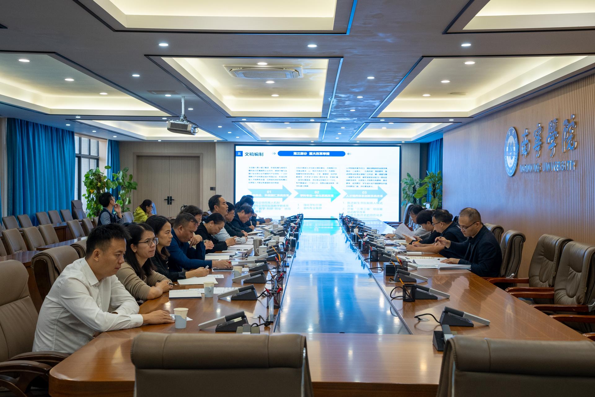 在听取汇报后,集团总经理、学校董事苏庆威,集团副总经理李林,集团战略投资部总经理师延领先后发言,他们围绕学校规划如何融入南宁市规划,如何衔接集团战略规划提出建议,并就学校学科专业建设与集团产业布局协同赋能、集团与学校深化产教融合具体路径、学校教育资源与集团下属各子集团核心资源共赢发展等关键议题展开深入研讨,提出一系列具有战略性和操作性的指导意见。