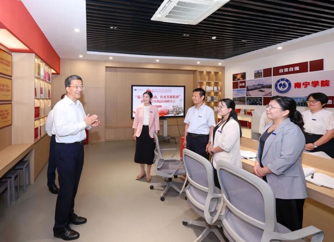 2025年6月19日,教育部党组书记、部长怀进鹏部长在英雄精神传承体验馆与思政课教师亲切交流