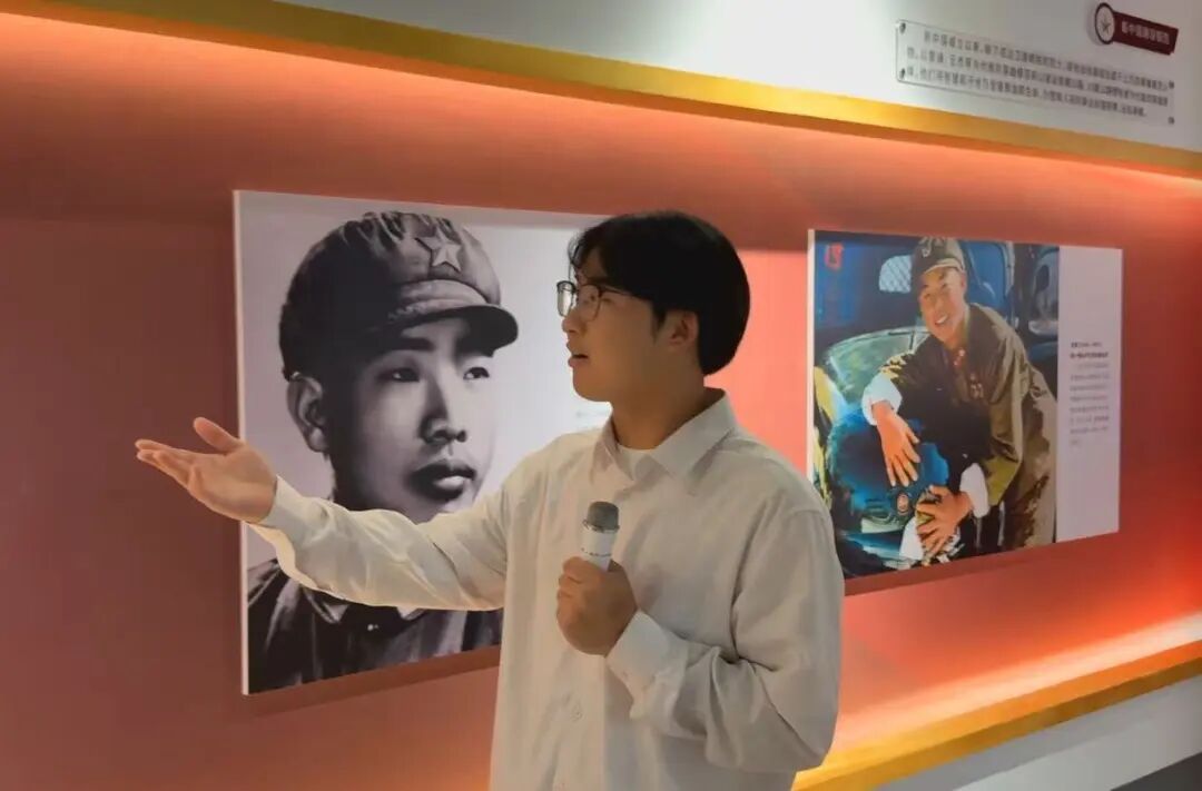 学生在“英雄精神传承体验馆”主讲英雄故事
