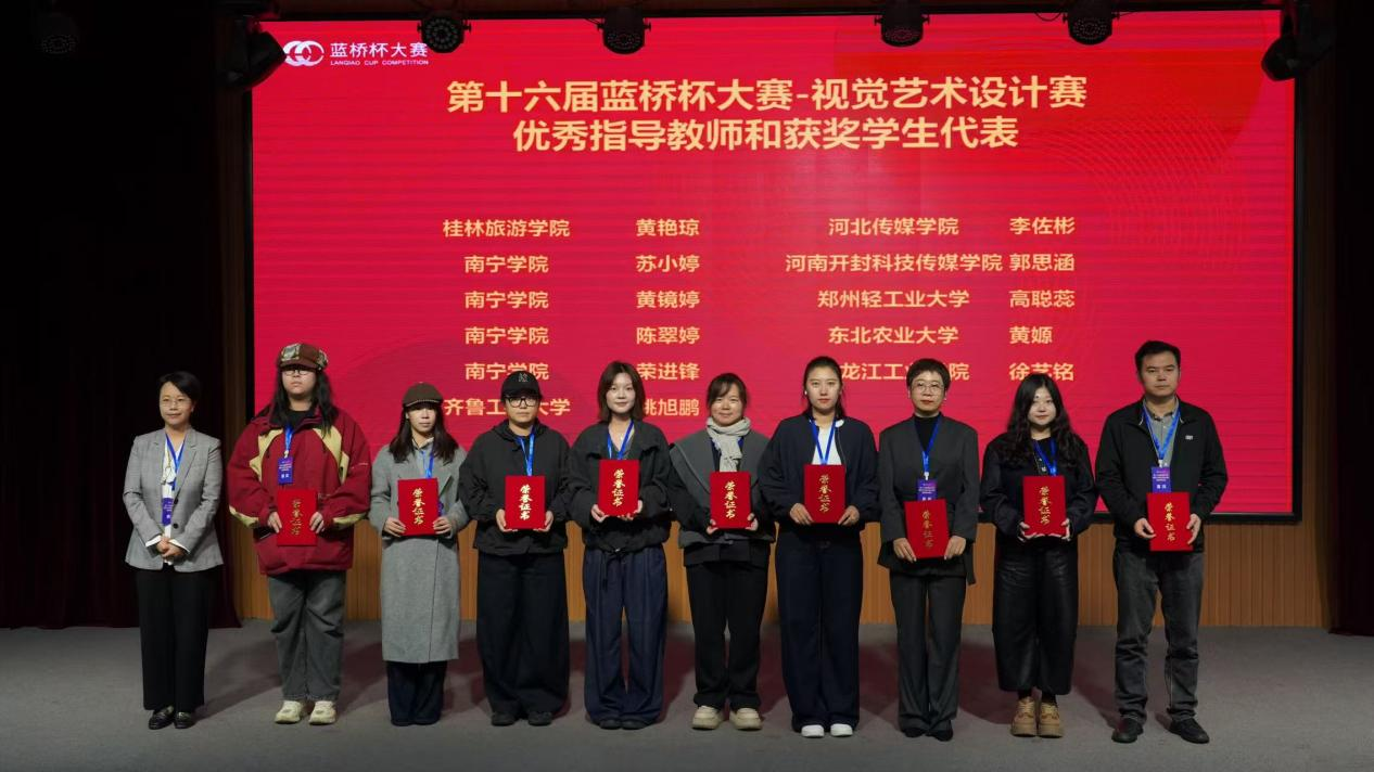 近日,第十六届蓝桥杯大赛视觉艺术设计赛颁奖典礼、第十七届蓝桥杯大赛视觉艺术设计赛启动会暨师资培训会在青岛农业大学学术会馆举办,该赛事是教育部认可的二类学科竞赛。艺术与设计学院师生在此次赛事中取得优异成绩,由苏小婷、黄镜婷两位指导老师带领获奖学生代表陈翠婷、谭颖参加颁奖典礼。