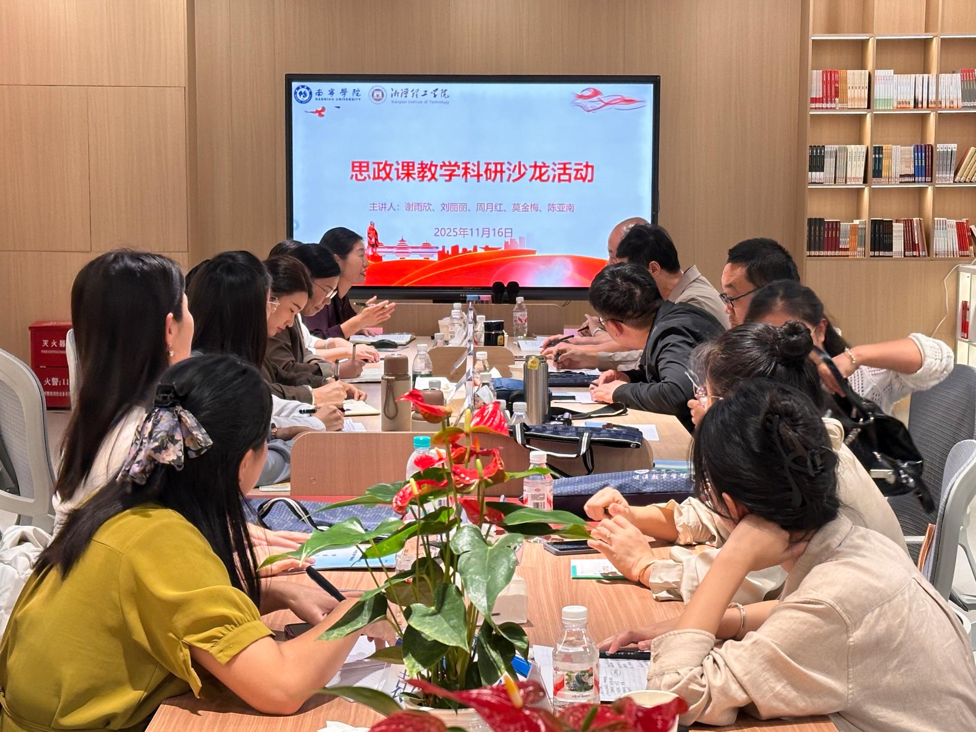 在教学科研沙龙环节,我院青年教师代表进行了思政课教学展示,骨干教师分别就教学竞赛、科研项目申报、实践课程建设、教研室管理等方面作了经验交流。双方教师围绕思政课教学内容优化、教案设计、教研团队建设等议题展开热烈讨论,共同探讨提升思政课吸引力和实效性的路径与方法。