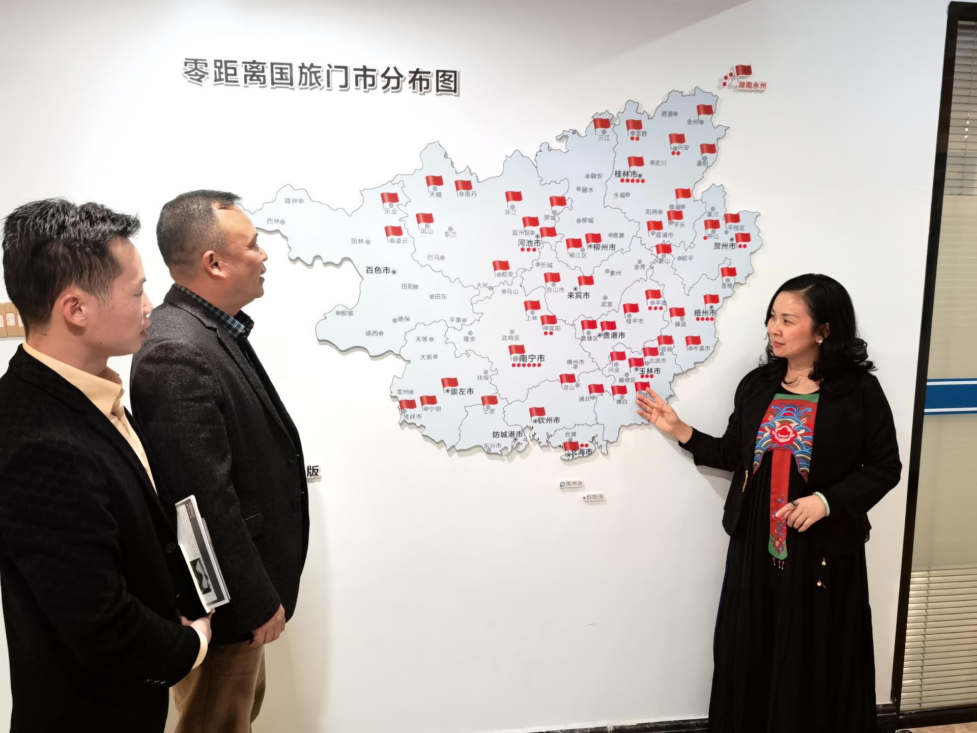据了解,广西零距离文化旅游投资集团是一家致力于文旅项目投资、运营及品牌孵化的综合性企业,业务覆盖文化旅游、研学旅行、文创产品开发等多个领域,近年来在推动地方文旅融合发展中成效显著,打造了多个区域标杆项目,已成为广西本土具有影响力的文化旅游企业之一。此次走访进一步加深了学校与校友企业之间的沟通与协作,为校企深度合作协同育人奠定了坚实基础。