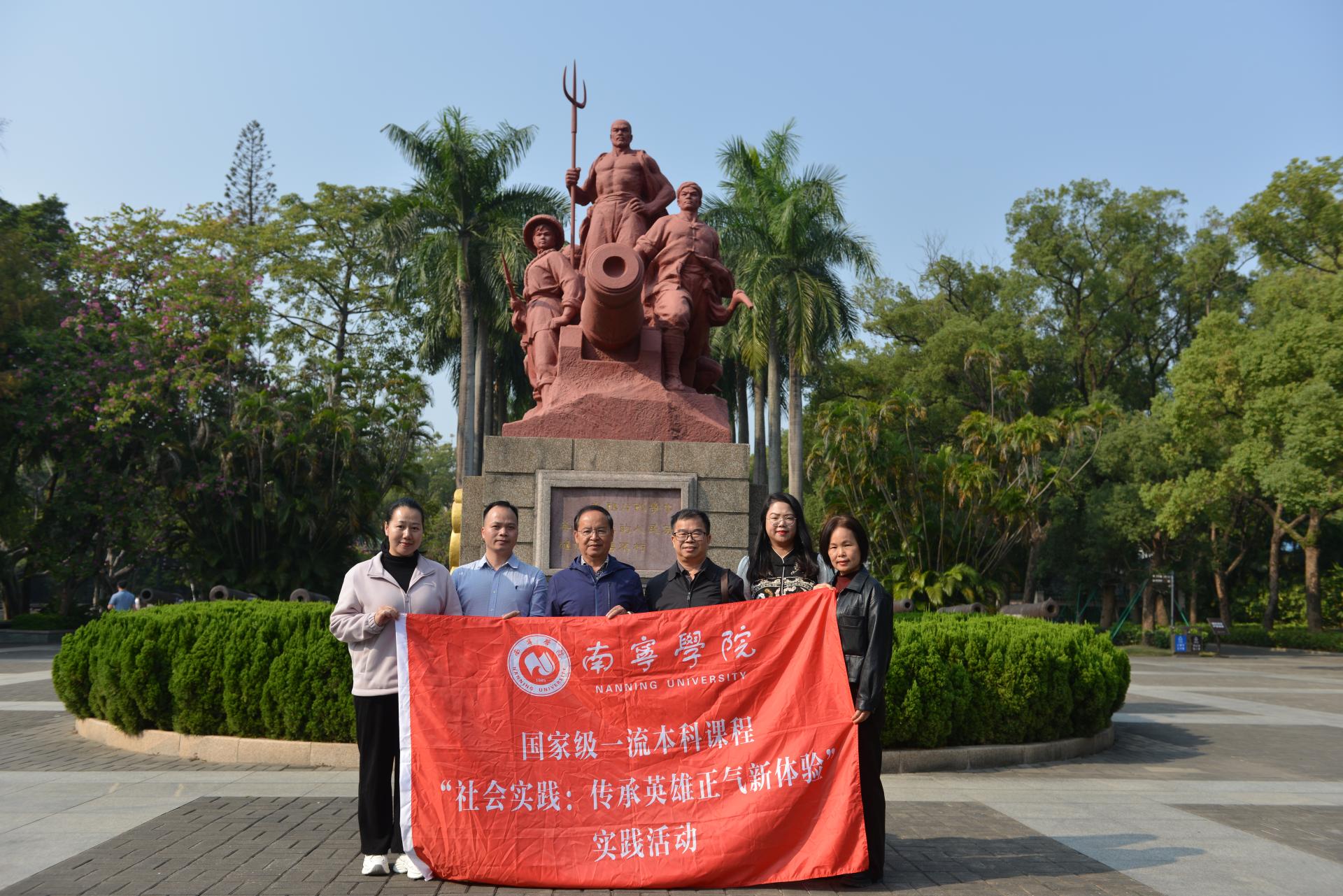 课程团队与东莞历史学者在鸦片战争博物馆广场雕塑合影