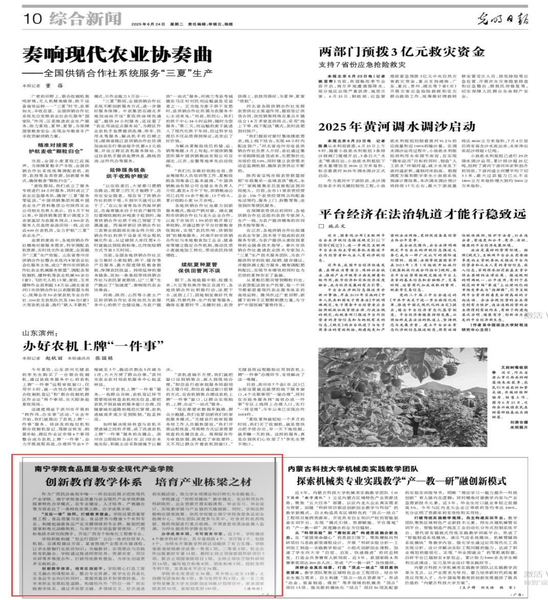 《光明日报》刊登食品质量与安全现代产业学院建设成效《创新教育教学体系培育产业栋梁之材》