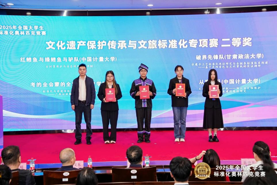 学院学生(左三)在2025年全国大学生标准化奥林匹克竞赛中获二等奖