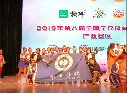 2019年11月15日-17日,由国家体育总局体操运动管理中心、中国健美操协会、南宁市体育总会主办的2019年第八届全国全民健身操舞大赛广西区赛,在广西财经学院举行。由学校通识教育学院体育教研室派出的健美操、啦啦操代表队,经历拼搏与努力,力敌各大强队,最终取得大学乙组《大众锻炼标准规定动作》特等奖、自选运动舞蹈特等奖的好成绩,指导教师唐雨、龚敏、杨凯茵均获“优秀教练员”荣誉称号。